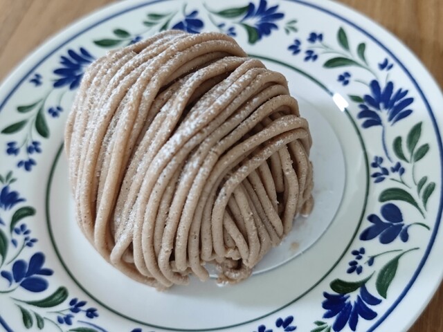 通常のモンブランにありがちな甘すぎるケーキではなく、栗本来が持っている甘さが味わえる適度な甘さ。美味しかった。今月で終了。