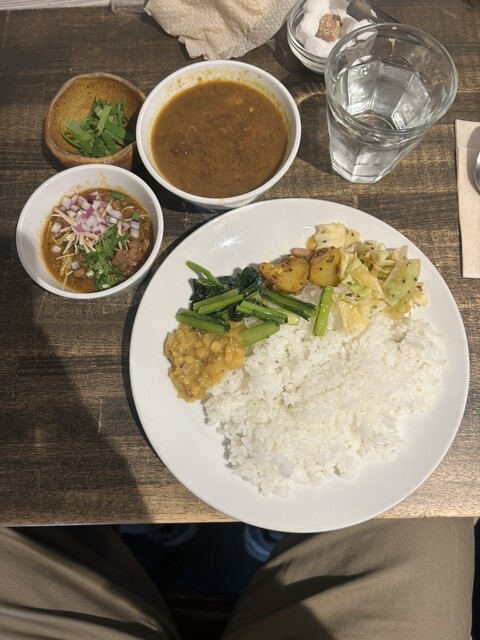 いつも2種を頼んで、そのほか気分で違うカレーをチョイスします。今回は、「ポークビンダル」を注文しました。