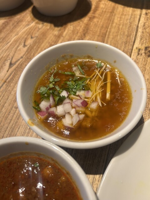 ご飯の脇に乗ってくるアチャール類はどれも美味しく、カレーに行き着くまでに、ライスが半分くらいなくなってしまいます。一杯はおかわりできるのも嬉しいです。