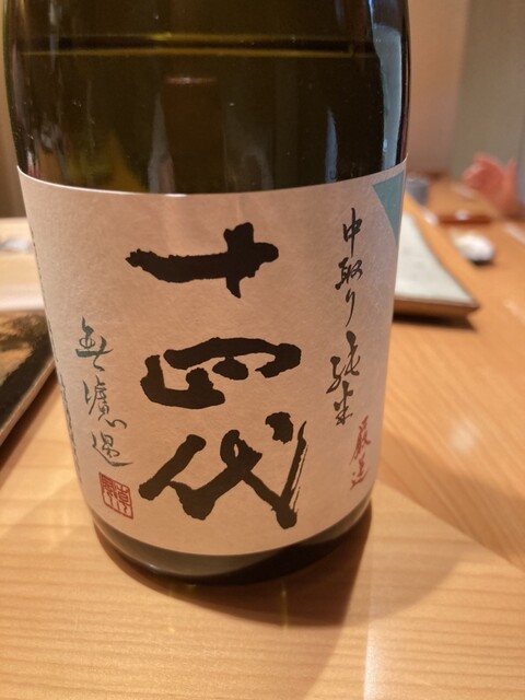 このお酒は師匠の持込品です、悪しからず。持ち込み料3300円のはず。十四代に負けない一流の鮨でした。