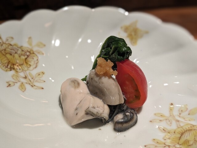 生姜とネギをペースト状にしたものを鯵に乗せていただき、他にはないアイディアで驚きました。このペーストが鯵との相性と非常によく印象的でした。鯵の旨みと生姜の風味が最高でまた食べたいです