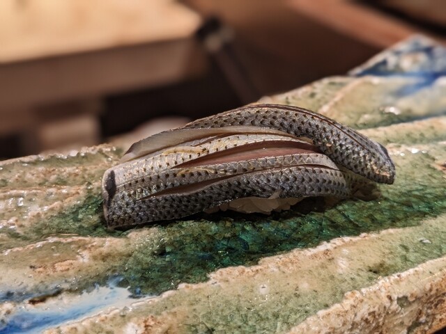 一貫一貫丁寧に握られたお鮨は、見てわかるほど鮮度が高いです。お鮨は直接味付けされていてお醤油はいりません。食べたときの食感や味の広がり方を考え、お鮨ごとに違った切込みを入れているのには圧巻でした。中でも特にお気に入りだったのは「鯵」「やま幸の鮪赤身」「やま幸の鮪中トロ」。