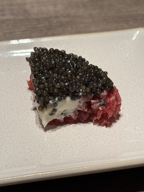 ◯厳選和牛とキャビアの燻製タルタル