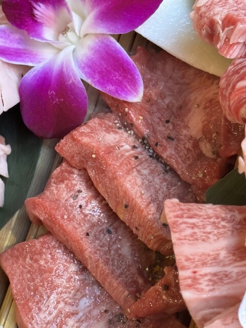 和牛すだれ焼き、厚切りタン、焼き野菜4種】