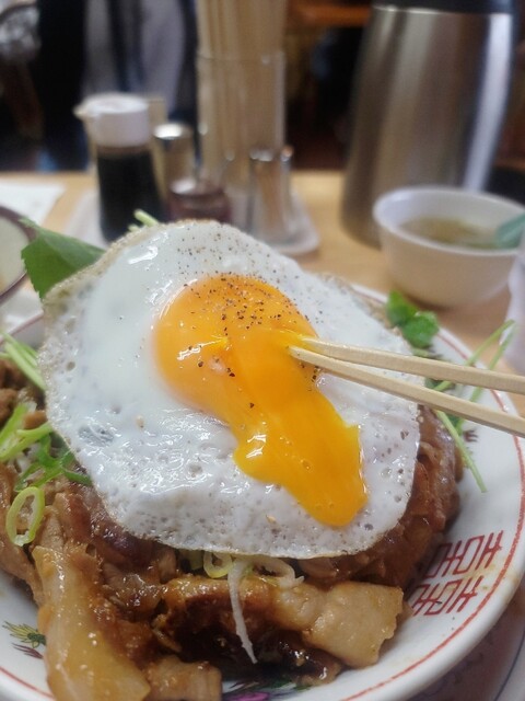 豚焼肉丼1300円 目玉焼き150円 半ラーメン600円