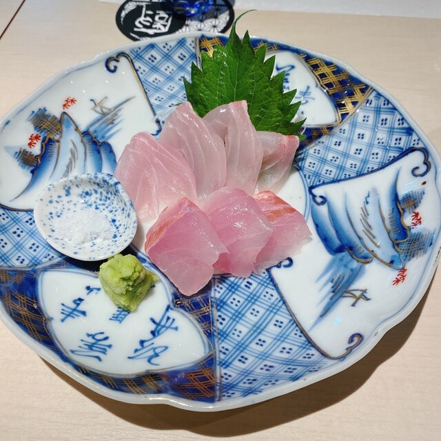 今回は金目鯛の刺身 こちらお塩がついていましたが、お塩とわさびでいただくのがすごく美味しかった!