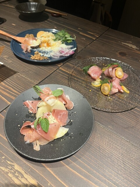 香草やスパイスを効かせた、ジャンルにとらわれない酒肴や日替わりの大皿料理が揃っていて、日本酒でもワインでもお酒に合う一品が豊富です。