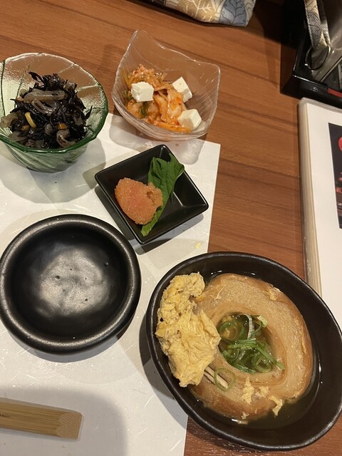 お通し/車麩・ひじき煮・明太子・キムチ