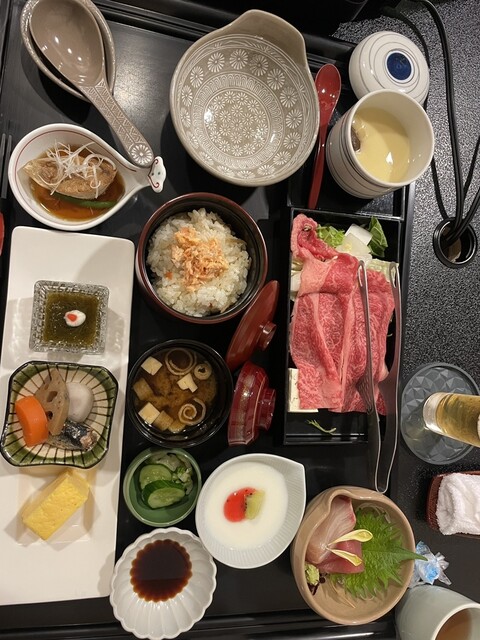 茶碗蒸し、赤だし、鮭ほぐしの御飯、香の物。