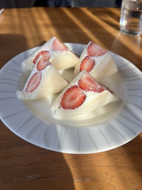 40年程前に父親に連れて行かれた喫茶店。前を通る度に変わらない特徴的な建屋。どんな風に変わっているか気になってふと家内と訪問。変わらない。昔のまま。当時はバナナジュース飲んでたかな?ブレンドコーヒー程よい酸味で美味しい。2杯目は割引がありました。フルーツサンドいちごの酸味を活かしたクリーム感でとても上品な美味しさ。良かった。また訪問したい。