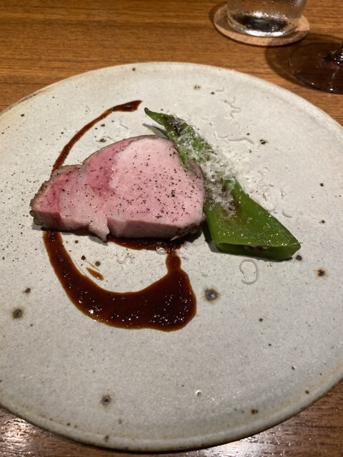 宮城で放牧されたハンガリーの国宝と言われるマンガリッツァ豚のグリルと万願寺とうがらし