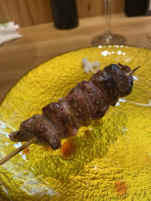 串に行く前に追加でレバ刺しを頼みました。新鮮なレバーで美味しいやつ!お酒が進み、早々に駆けつけ1杯の生中がなくなりスペインのスパークリングでこのコースを合わそうとボトルでオーダーしました。