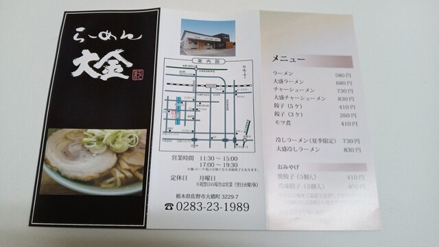 2016年新店舗時のお店のパンフ(ラーメン580円)