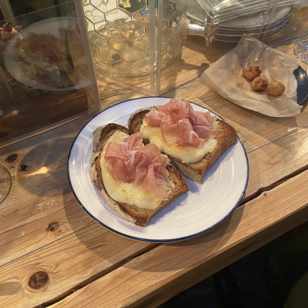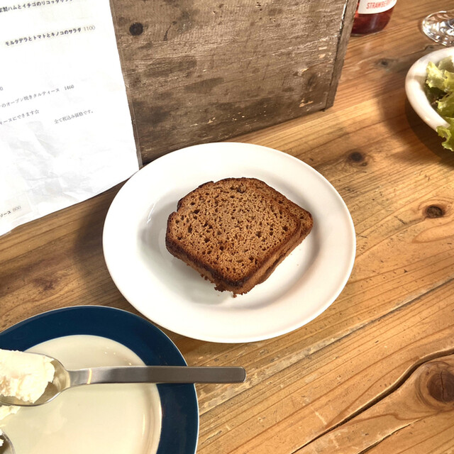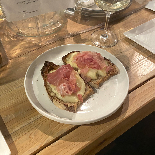 ほとんどのメニューが+¥300(パン代)でタルティーヌに変更できるみたいで、じゃがいものピューレとコンテのオーブン焼きをタルティーヌにしてもらいました!