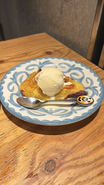 皮付きのアツアツさつまいもにヒンヤリバニラアイス