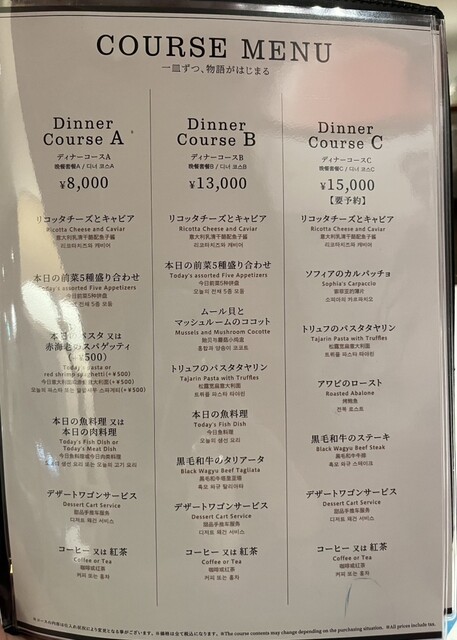 今回はディナーコースBをいただきました✍️