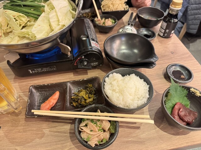 ランチセットはもつ鍋と馬刺しなどがついていて非常にお得です。