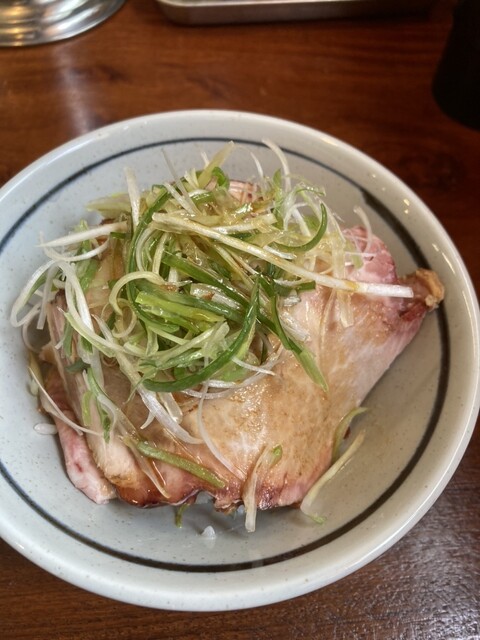 焼豚で外側は、叉焼の表面は、燻製しロースハムの一番外側の様な味と食感で、中はトロトロ。厚みも5〜8㎜が2枚、食べ応えもあり美味しかった。今日はスープもいつもより、とても美味しく感じました。特に旨味と塩味が良い塩梅と言うか好み味にピッタリでした。細麺もツルツルでスープとの相性も抜群でした。