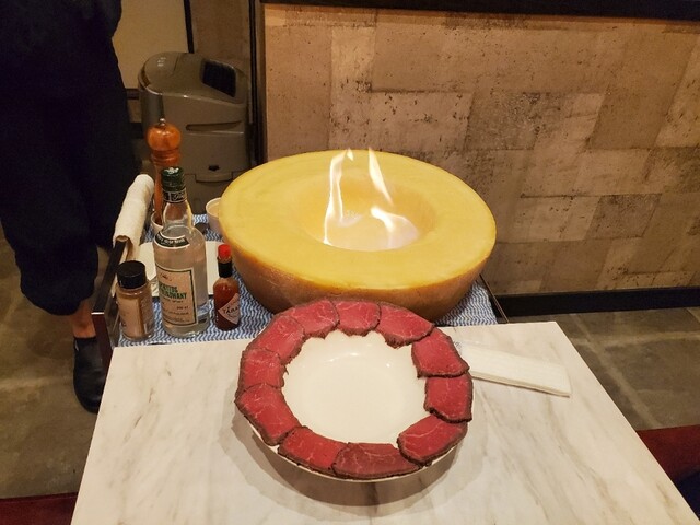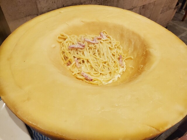 席に届くと同時にパルメザンチーズの大きな塊が運ばれ