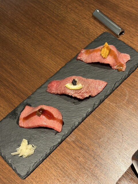 極み炙り握り3種と牛骨スープそして盛岡冷麺