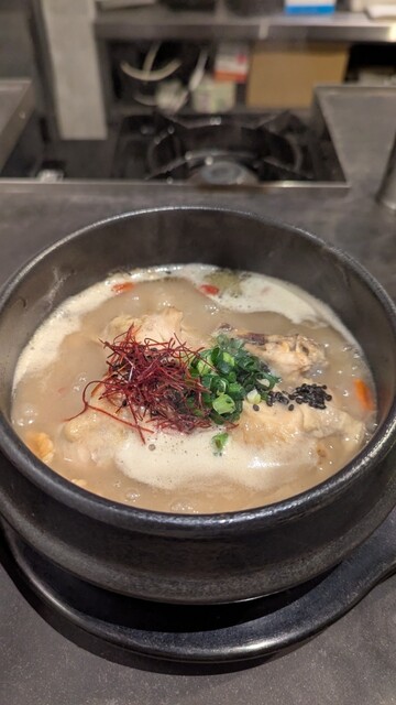 参鶏湯は目の前で火をかけてくれます。