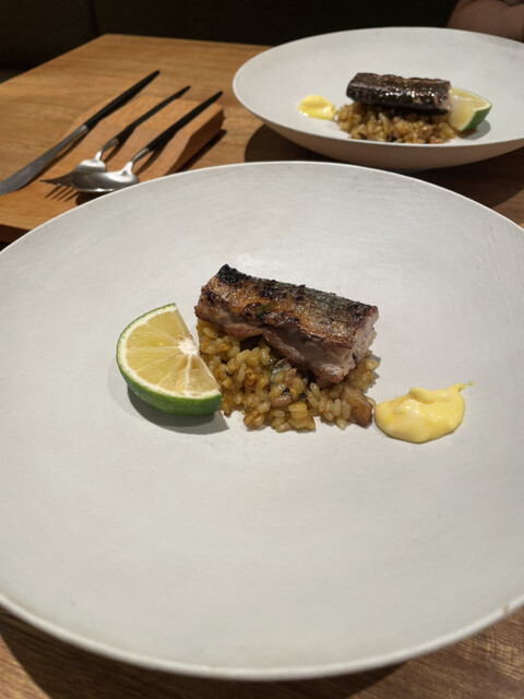 この時期にしか食べられない秋刀魚のパエリア。すだちを少しかけて食べたら止まらなくなりそうな美味しさでした。