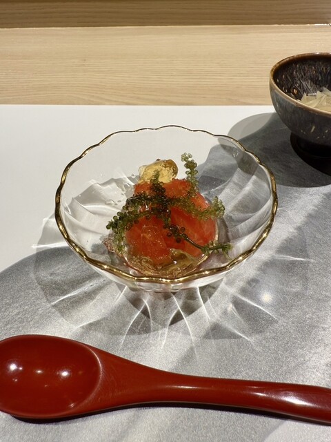 甘海老と蟹の茶碗蒸しがビスク風になっていて、もう赤ワインがまた合って最高!