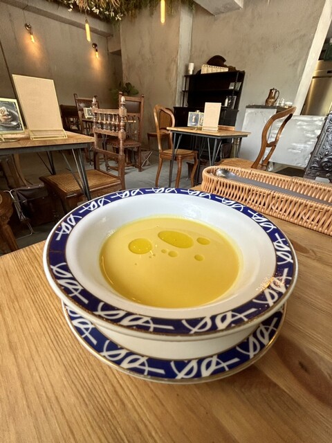 またまた冷製スープが美味しいです。今日はかぼちゃでした。