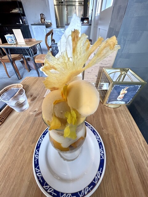 先週何かが違うかもと書いていましたバニラアイスは、となりのマンゴーアイスやパッションソース、マンゴームースとのハーモニーによるもので、バニラアイスでしたm(._.)m。美味しいです。