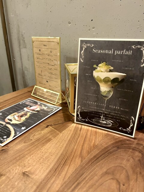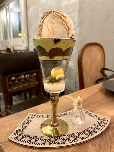 秋のレコルトで初登場したモンブランが、どでかく大主役になって登場です。タイミングよくお取り置きいただき、シランスパフェとモンブラン、シャインマスカットパフェとモンブランと、今日お邪魔した二人とも大満足のお腹いっぱいでした。