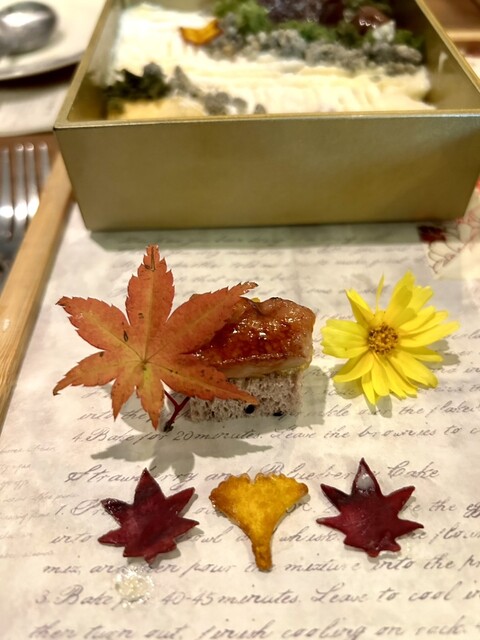 3年目を迎えた秋のテラリウムパフェ。レコルト(収穫)。今年はハロウィンバージョンを含めて3度目ですが、これは、枯葉を踏む心地よい感触(音で表現:パートフィローの妙義)を楽しめるパフェ。