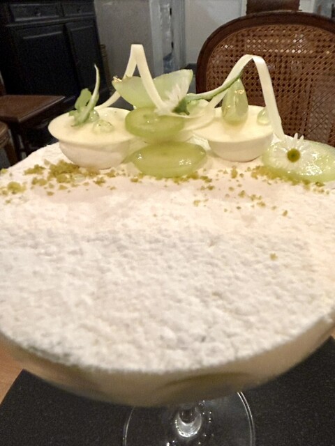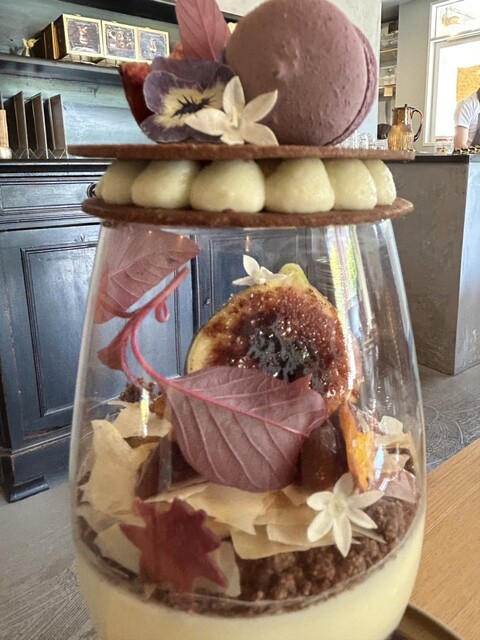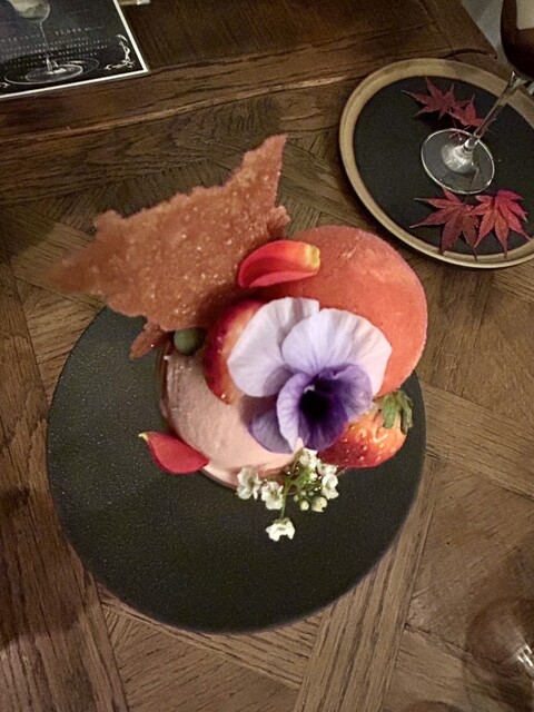 ムースとジェルとソルベとジェラート、フロマージュブランにワインゼリー。スポンジもあって粉糖が最高に滑らかで、調和がものすごく良くてとっても楽しく美味しいパフェです。(前回の投稿参照笑笑笑)