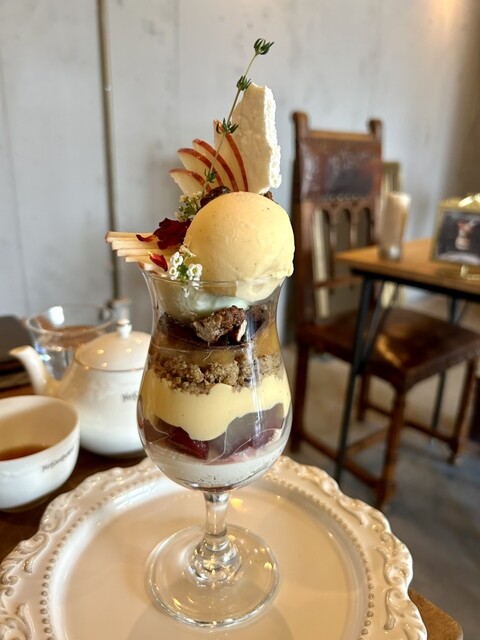 (もう一つのパフェは、林檎×pommeパフェ(3,200円)アイス多めでいろんなりんごのアレンジが楽しめるここでは初のりんごメインパフェ。10月越えてもまだありますよ〜。)