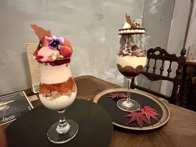 この秋のテラリウム・レコルト・パフェがまた変身。ハロウィンに化けたと思ったら、次はモンブランの泣ける美味しさに。