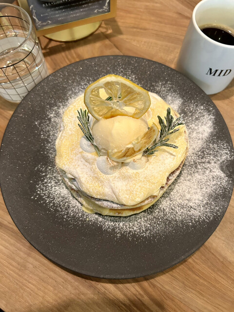 きょうは1年半前の初訪問でいただいた、れもん×Lemon×レモンパンケーキを新たなスタートに選びました(笑)
