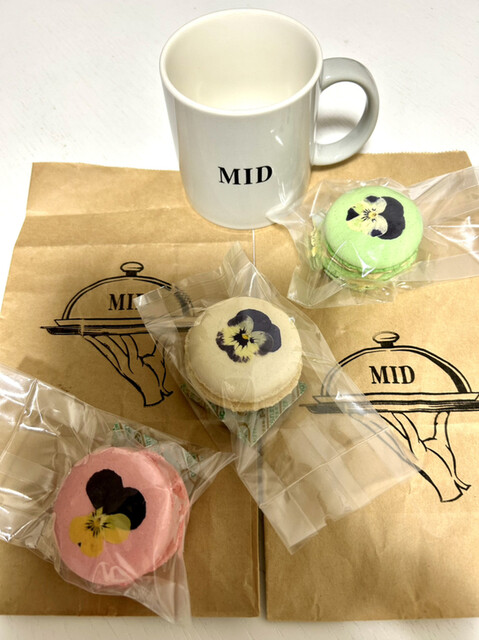 押し花マカロンは、ピンクの、すみません一口で溶けるようになくなったので、、、、笑。