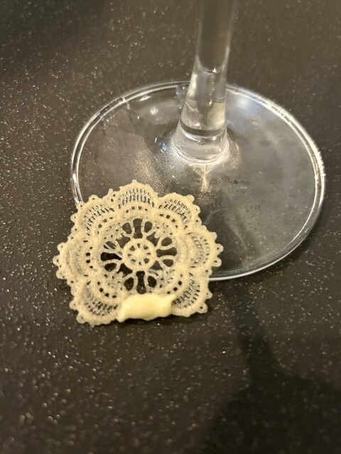 やっぱりメロンは個性が強くて難しいと思っていますが、エルダーフラワーゼリーですか、とても楽しいアイデアに包まれて、ココナッツが口の中で穏やかさを出してくれて、美味しくいただきました。