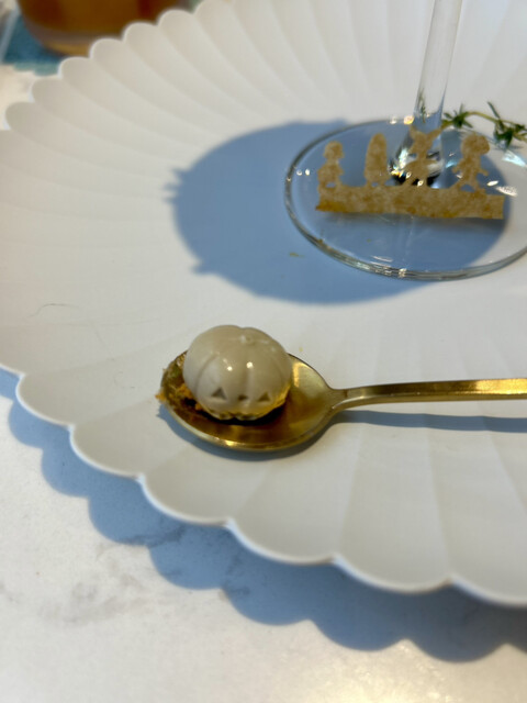 クリームとジュレが混ざり合ってまた良し。スパイスはパティシエさんにも感想を言ったんですけど、辛くない、カレーの味がしないガラムマサラみたいな感じと分かったような分からないようことを言ってしまいました。さて、どうでしょう。