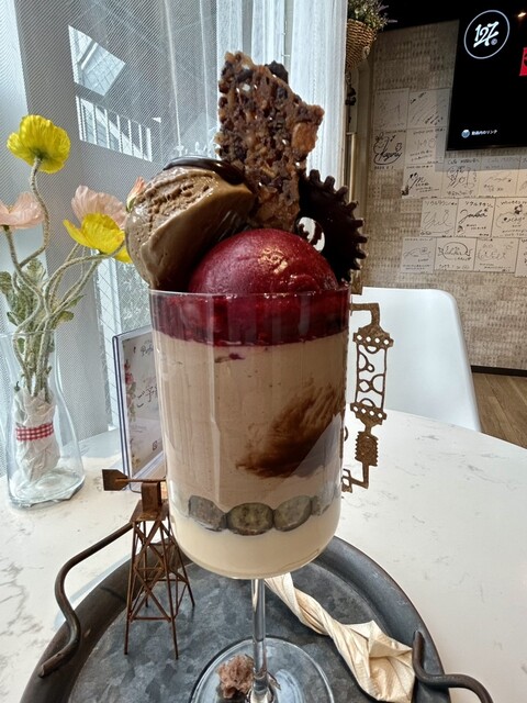 今まで100食近く頂いているパティシエさんのパフェですが、ちょっと雰囲気が違った芸術作品を楽しむことができました。