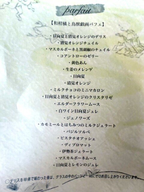 ◆和柑橘と鳥獣戯画パフェ(3,900円1ドリンク付)