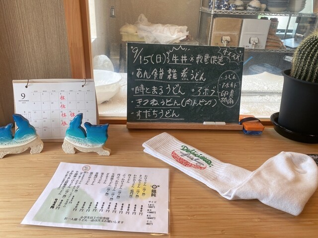 店内はテーブル数点と讃岐富士が見えるカウンター。