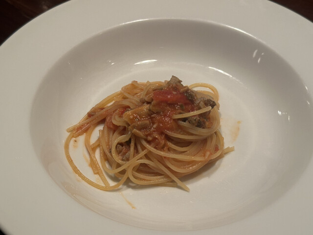 アワビ、魚介のラグーソーストマトスパゲッティー