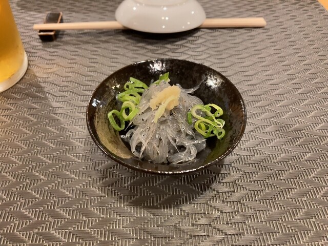 海月と水雲の和え物がさっぱりコリコリしており美味しい。