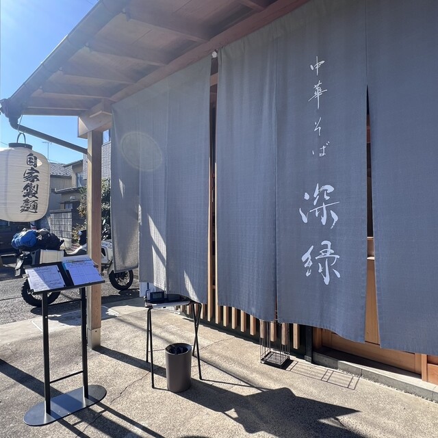 初訪問。中華そば 深緑さんへ。埼玉県東松山市に店を構える。オープンは2020年9月。食べログ百名店EAST2023。『中華そば 四つ葉』のセカンドブランドであり、2024年11月16日現在、食べログの点数は驚異の3.96。埼玉県一位の人気を誇るラーメン店だ。記帳制を採用しているが、10時半頃の訪問でファーストロットで入店できました。今回は黒出汁をオーダー。