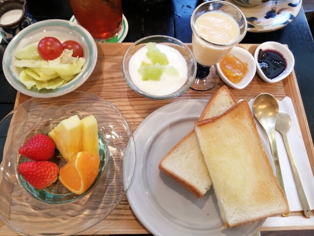 トーストセット…サラダ、フルーツ、ヨーグルト、フルーツジュース、ジャム付き♪