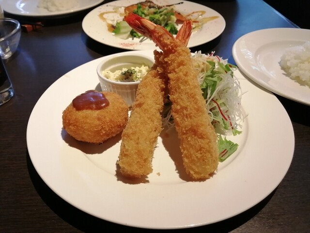 (大きなエビフライが2本ものって自家製