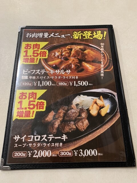 数量限定のお肉1.5倍のサイコロステーキ。まだあるそうなので、そちらを注文。
