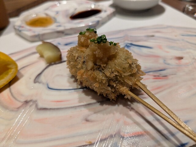 一本ごとに施された繊細な手仕事は流石の一言で、素材の良さを最大限に引き出す揚げ加減と独創的な組み合わせに、一本目から心を掴まれました。