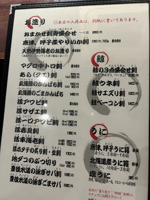 店の入り口横には大きな水槽があり、イカや魚たちが元気に泳いでいます。車海老に伊勢エビも。この時点で間違いない。