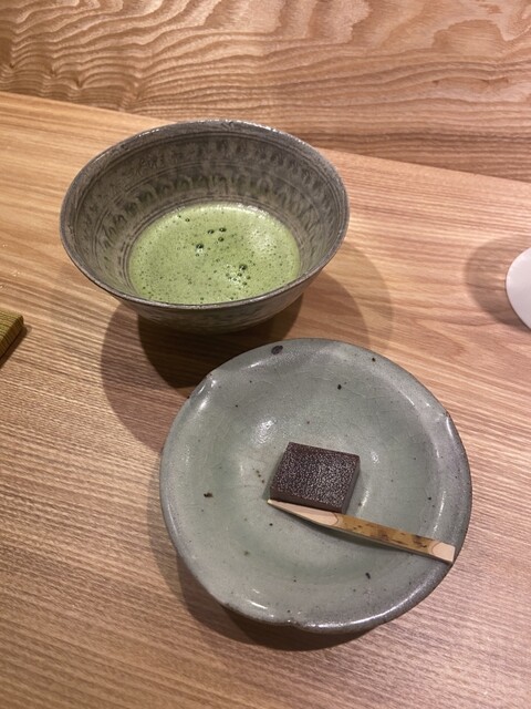 目の前でお茶を立ててくださいます。ここのお店は食器にもこだわっており、1人1人違う茶器。器の説明や器の見た目にも気を取られてしまいました。